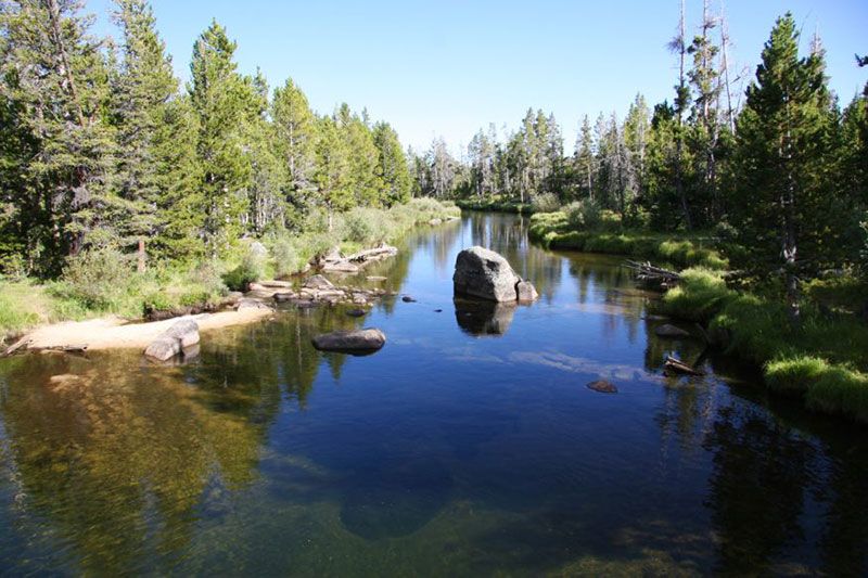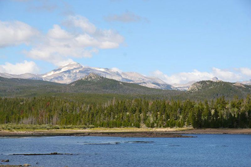 The popular Louis Lake area is a mile beyond the Little Popo Agie. Pronounced “Lewis” or “Lew-ee” Lake, there are picnic areas, and campgrounds. The Louis Lake Forest Service Guard Station and Lodge are by the lake. Built in 1937, the lodge offers cabins, boat, bike and fishing equipment rentals. The lake its are an elevation of 8500.’ Rainbow, Brown, and Brook trout are all in the lake as are Mackinaw.