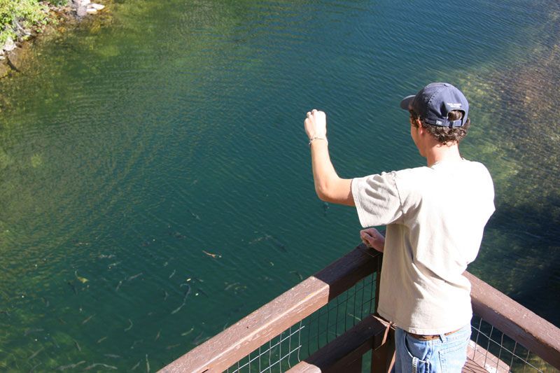 One of the most popular activities on the park anytime of the year is to feed the huge trout in the pool at the Rise.