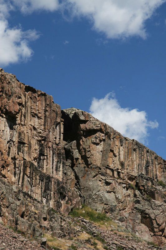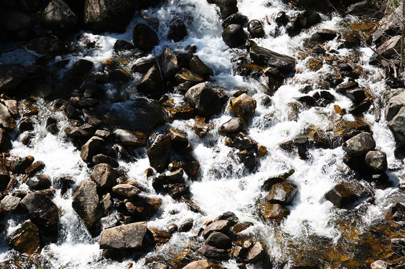The Middle Fork Falls are formed where the Popo Agie River cascades over large rock outcrops as it drops into Sinks Canyon. The falls are actually a series of waterfalls and cascades, with the longest vertical fall about 60 feet high.