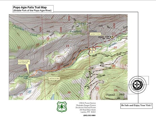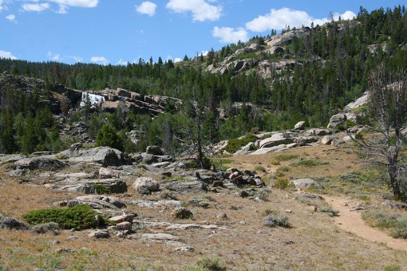 The Falls Trail is also the Middle Fork of the Popo Agie Trail, which continues on past the Falls into the Popo Agie Wilderness.