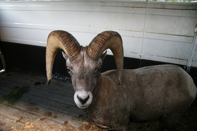 In the fall of 2009 Bam Bam was moved to the Game and Fish’s research facility in Sybille Canyon near Wheatland. He spent the last 4 years in a large pasture with a few other Bighorns and some Bison. According to Terry Krueger manager of the Sybille facility, he was popular with the public driving by since he was often close to the road, albeit behind a tall fence.