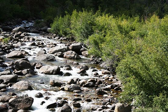 The Popo Agie river running through Sinks Canyon supports an important riparian ecosystem. Riparian, or riverside areas have a high water table allowing plants easy access to water, leading to lush growth near streams and lakes. The diversity of plants attracts a wide variety of birds and animals. Riparian zones provide food, cover and travel corridors for fish and all other creatures. These zones also stabilize stream flow, remove sediments and help dissipate flood waters. In Wyoming only a fraction of the land is in a riparian zone making them crucial for wildlife. The majority of Wyoming’s wildlife are dependant on healthy, clean riparian areas.