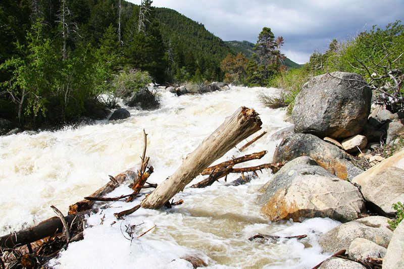 The amount of water flowing into the Sinks varies throughout the year. Most of the time much of the limestone cavern is exposed and all of the river’s water flows underground through the cracks and fissures in the rock. The average flow of the Popo Agie into the Sinks is about 100 cubic feet per second. This level drops in the winter and jumps dramatically during spring runoff. In late May and early June the river swells with melted snow from the mountains and the river fills the cavern completely. During runoff over 500 cubic feet per second of water flows into the cavern.