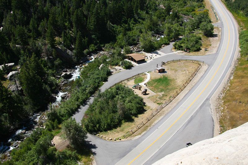 There are three campgrounds in Sinks Canyon. Sawmill and Popo Agie campground are state park campgrounds. Sinks Campground is at the upper end of the canyon and is a National Forest campground. There are additional National Forest Campgrounds along the Loop Road (Highway 131) above Sinks Canyon.